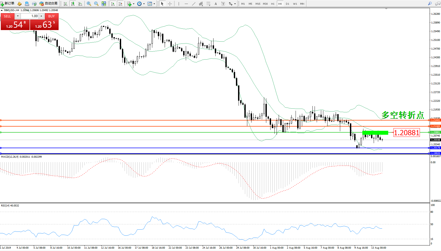 交易策略:1.20881下方看跌,目标1.20178、1.19920