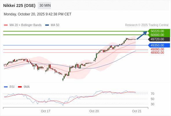在 49350.00 之上,看涨,目标价位为 50000.00 ,然后为 50220.00 。