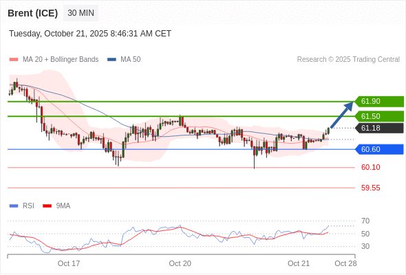 在 60.60 之上,看涨,目标价位为 61.50 ,然后为 61.90 。