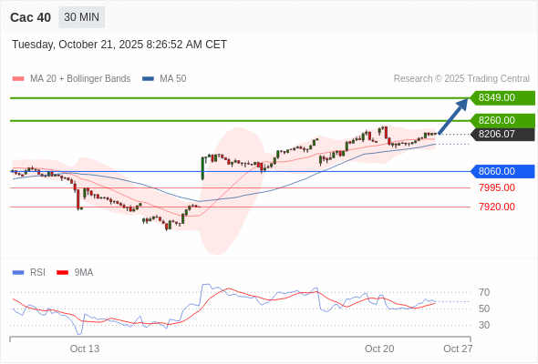 Cac 40 当日内: 在8060.00之上,看涨。