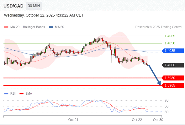 在 1.4035 之下,看跌,目标价位为 1.3980 ,然后为 1.3965 。