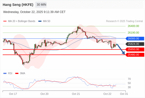 在 26000.00 之下,看跌,目标价位为 25650.00 ,然后为 25480.00 。