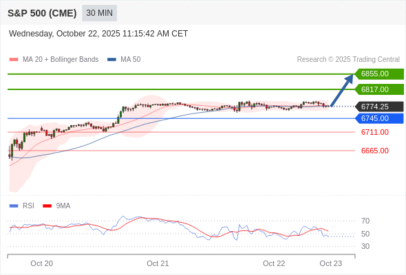 在 6745.00 之上,看涨,目标价位为 6817.00 ,然后为 6855.00 。