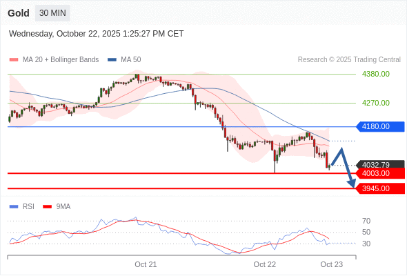 在 4180.00 之下,看跌,目标价位为 4003.00 ,然后为 3945.00 。