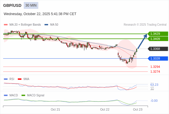 英镑/美元 当日内 : 看涨,当 1.3328 未被跌破。