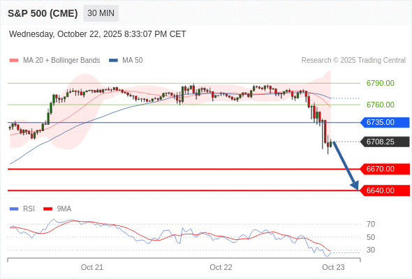 在 6735.00 之下,看跌,目标价位为 6670.00 ,然后为 6640.00 。