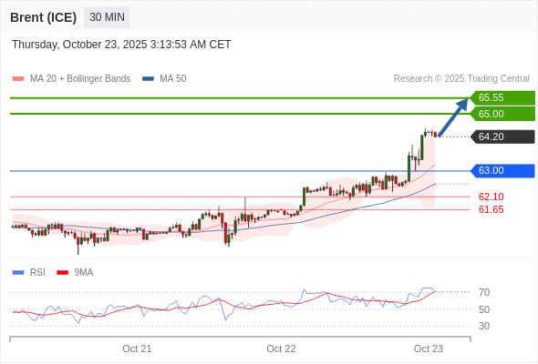 在 63.00 之上,看涨,目标价位为 65.00 ,然后为 65.55 。
