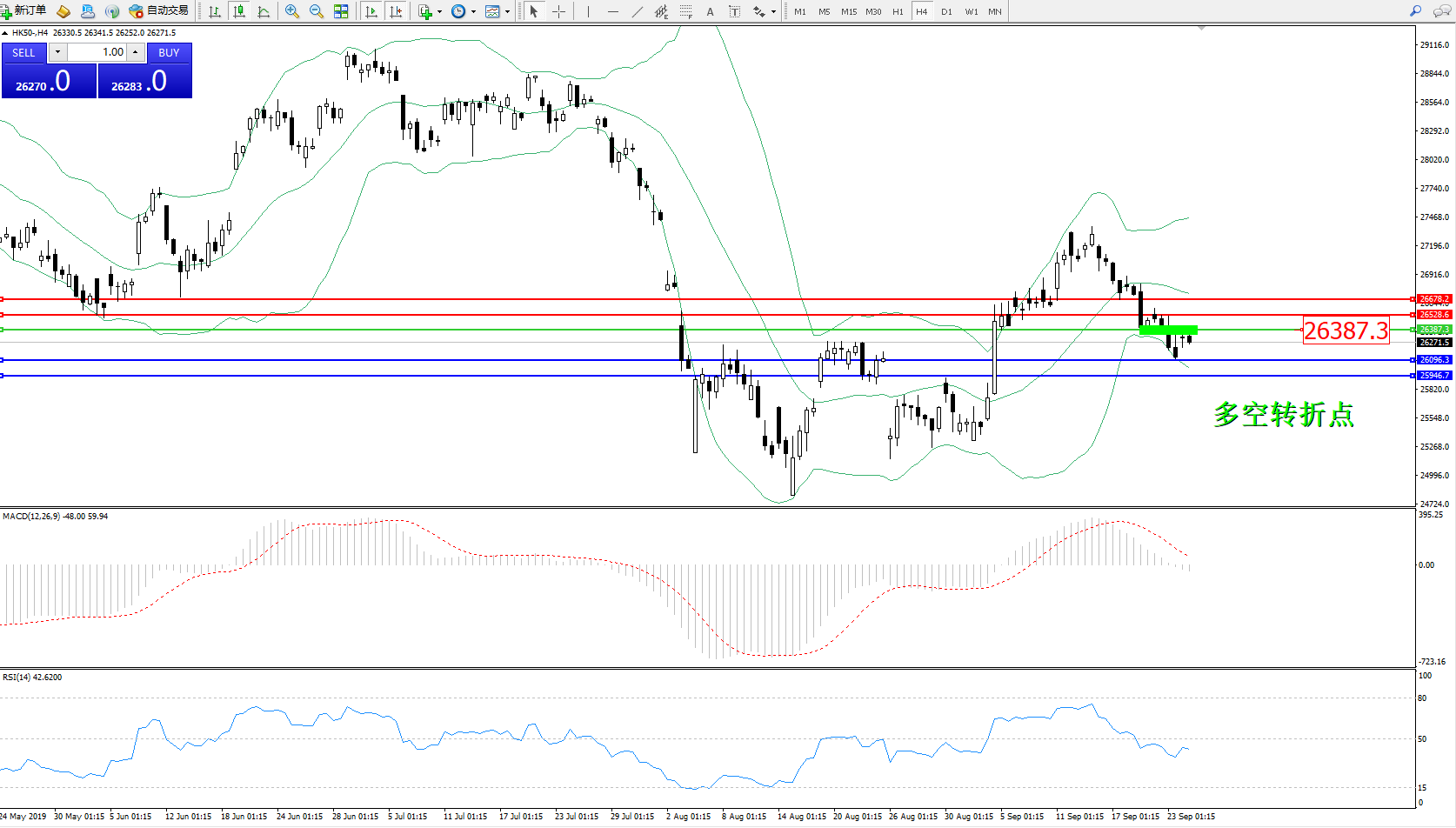 香港恒生指数924日(周二)收盘上涨58.60点,涨幅0.22%,报26281.00点;港股节前大概率还会继续下调,如果有1-2天的反弹,也可以理解为跌多了会弹一下。恒指今日最多升近170点,高见26391,续在高位附近上落至收市。恒指已经连跌6日,累计跌超过1130点,为年内最长跌市欧元区9月制造业PMI令人失望,初值为45.6,创201210月以来最低水平;欧元区经济未来几个月将进一步恶化。恒指节前大概率还会继续下调,如反弹可理解为跌多了反弹一下,市场暂时处于弱势情况下。