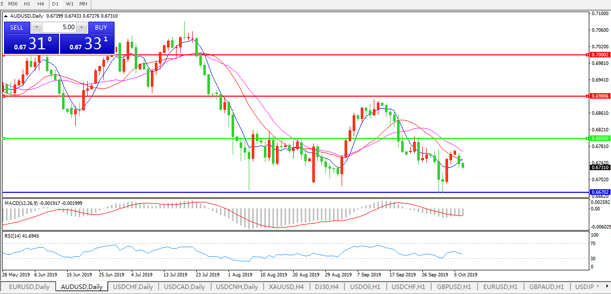 澳元兑美元在周一亚洲时段承压走低,表现领跌于G10发达经济体货币,因美元指数重新走强,导致澳元兑美元汇价在此前连续三个交易日大幅反弹后丧失了进一步上攻的动能;与此同时,投资者在周末过后对于全球范围内经济前景仍然倾向悲观,这对于高风险商品系货币澳元仍是利空。而在此后中国内地金融市场将于周二恢复交易之际,考虑到澳洲经济与中国市场的高度关联性,投资者也相对谨慎地放弃了进一步追高; 并且,从更大尺度的趋势来看,上周后半段澳元的反弹只是短线技术性回调而已,在宏观大格局并未彻底好转的状况下,澳元兑美元后市仍将延续中长期下行趋势,短线阻力下看5日均线支撑位0.6735,跌破后将宣告技术性反弹走势结束,并进一步重新下探0.67关口