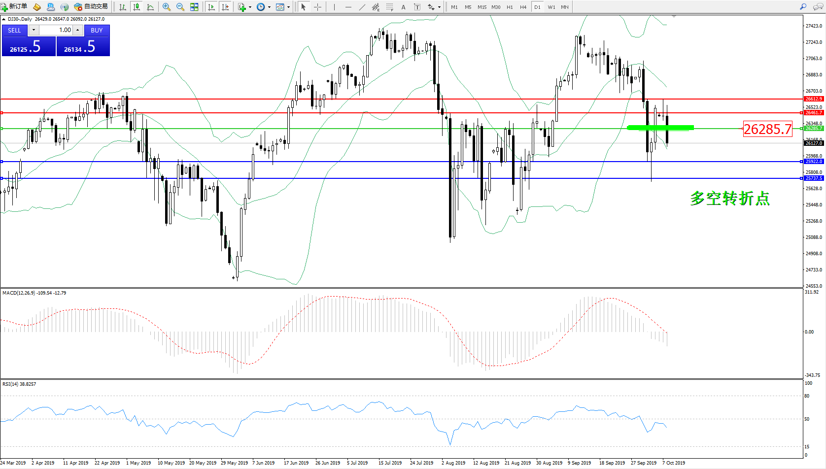 道琼斯指数10月8日(周二)收盘下跌314.00点,跌幅1.19%,报26164.04点。美联储主席鲍威尔未承诺进一步降息,此前在对美国全国商业经济协会发表的讲话中鲍威尔澄清说,不应将为扩大资产负债表而购买美国国债与量化宽松相混淆,增长显然在放缓,但没有理由认为扩张将结束,市场聚焦即将举行的高级别贸易谈判也是美元上涨的一个原因。