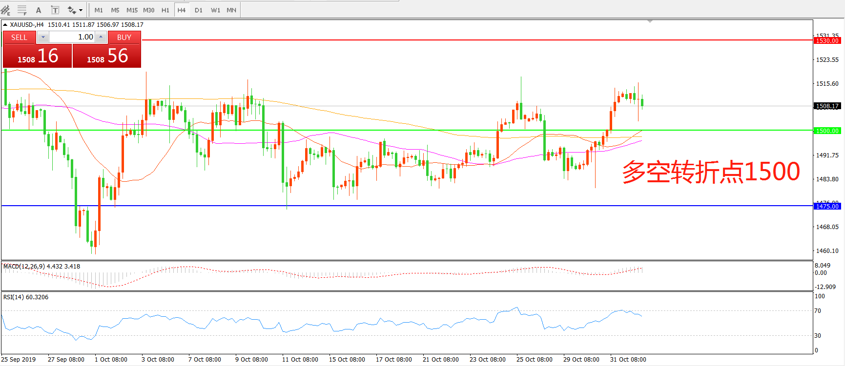 上周黄金整体呈现宽幅走势,周初因美联储如期降息导致金价持续走低,刷新一周低点后跌至1480美元附近,不过随着鲍威尔的强势表态及喜忧参半的美国数据,金价自低位企稳回升。周五非农数据掀起市场波澜,好于预期的表现一度导致黄金大跌,但是韧性十足的金价最终收复失地,收报1508.16美元/盎司。