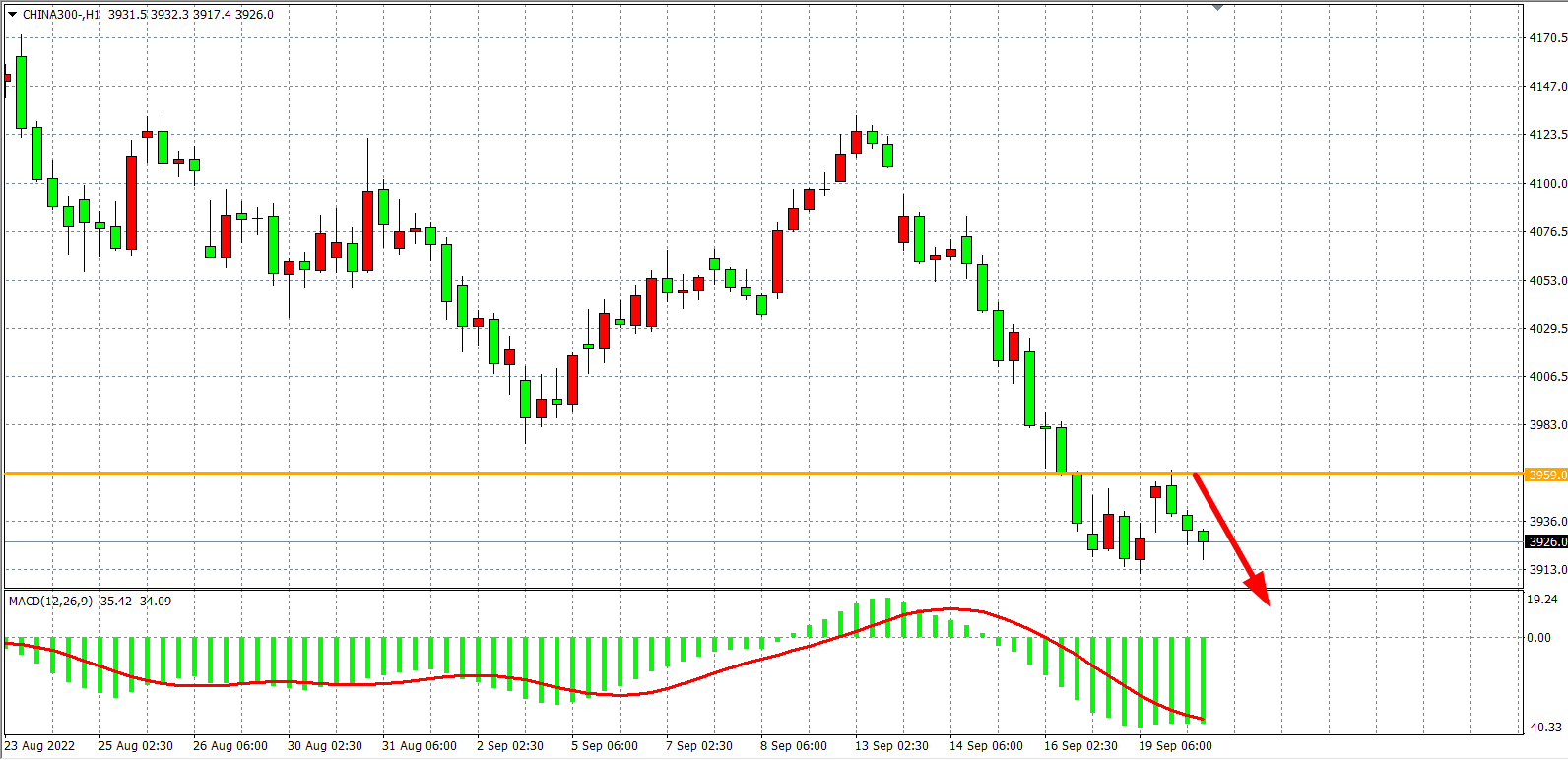 1小时图看,沪深300冲高回落,反弹强阻力3950再度下跌,压力位再度确认,同时MACD在零轴之下持续放量,趋势仍偏空头为主。