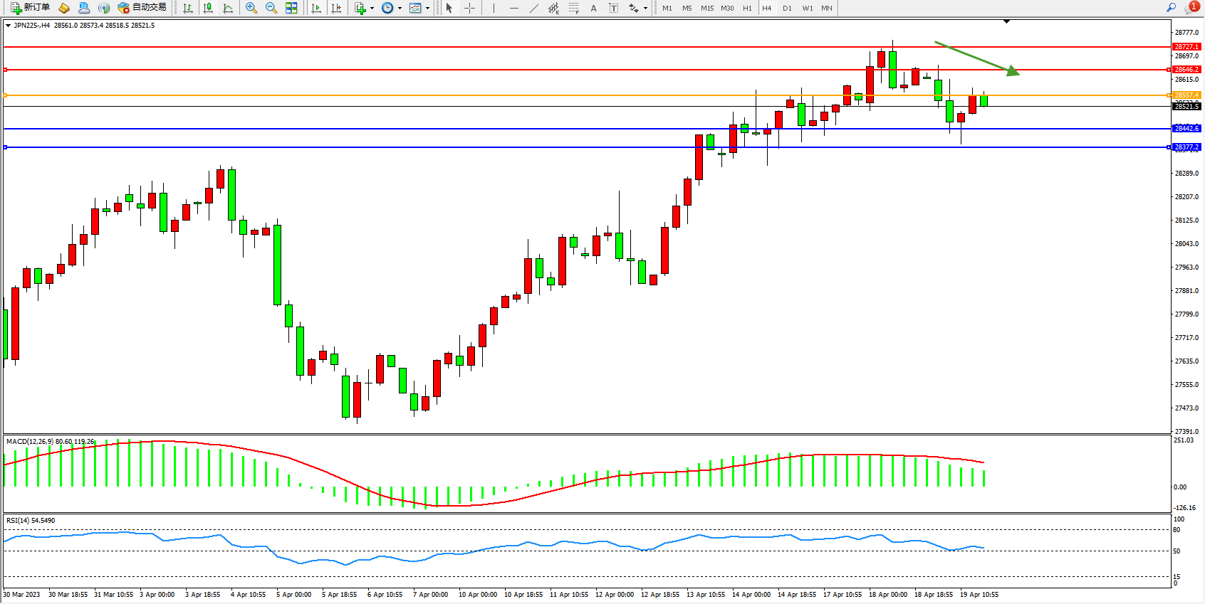 日经225指数4月19日(周三)收盘下跌69.33点,跌幅0.24%,报28589.50点。日本央行执行董事SHIMIZU:2023财年中期日本CPI增速可能放缓至2%以下。暂时继续实施宽松政策是合适的。