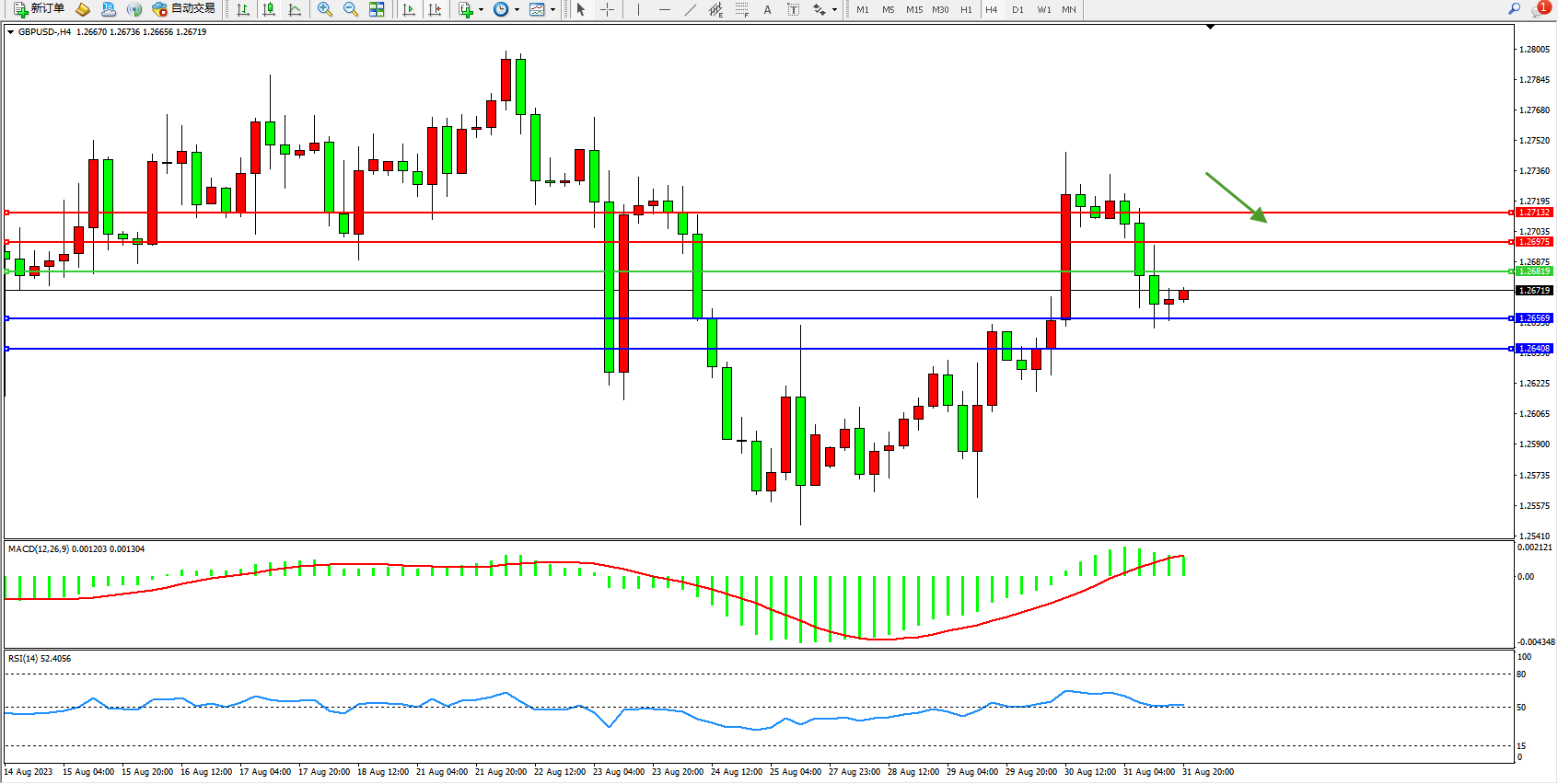交易策略:1.26819下方看跌,目标1.26569 1.26408