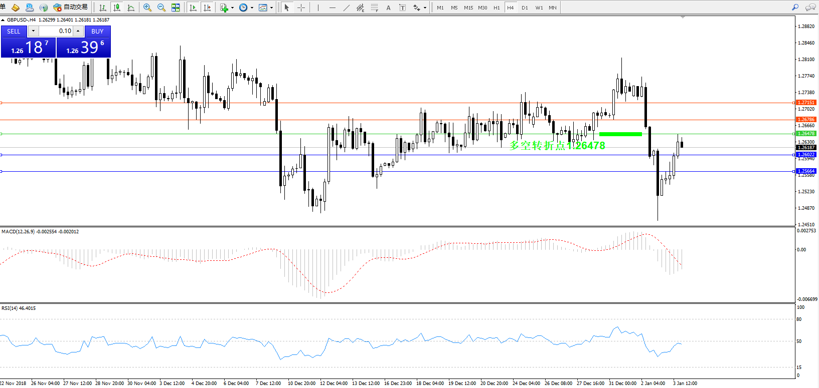 交易策略:1.26478下方看跌,目标1.26002、1.25664