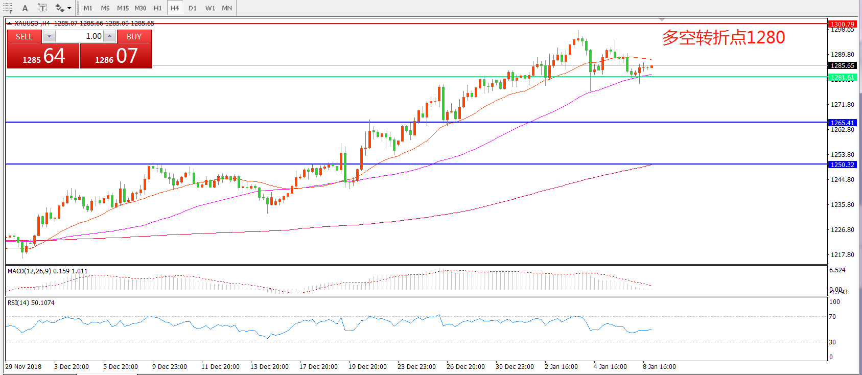 美国总统特朗普也发推称:“与中国的谈判进展非常顺利。风险情绪的改善对金价形成了一定的压力,现货黄金周二(1月8日)小幅收跌。北京时间周三(1月9日)10:00,美国总统特朗普将在“黄金时段”发表讲话,阐述在美墨边境修墙的理由,投资者密切关注他是否会在演讲中宣布全国紧急状态,若果真如此,可能会引爆市场行情。除此之外,周三美联储还将公布会议纪要,在近期美联储加息预期降温的情况下,最新的会议纪要可能给投资者提供指引。