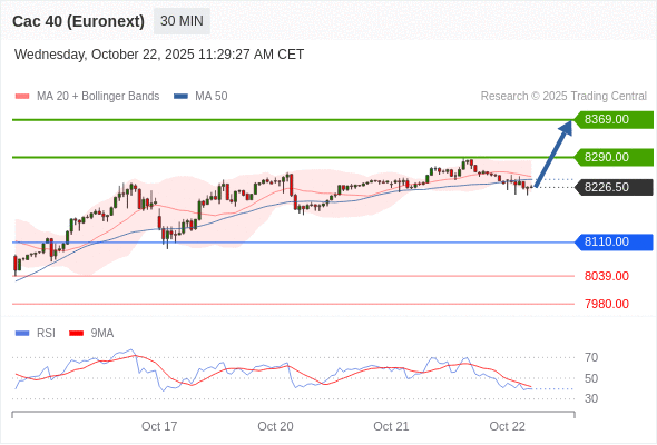 在 8110.00 之上,看涨,目标价位为 8290.00 ,然后为 8369.00 。