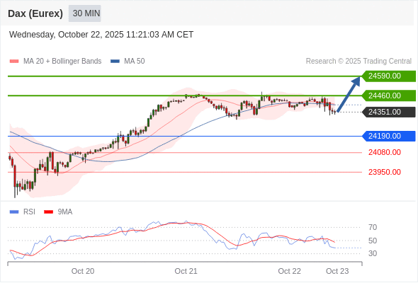在 24190.00 之上,看涨,目标价位为 24460.00 ,然后为 24590.00 。
