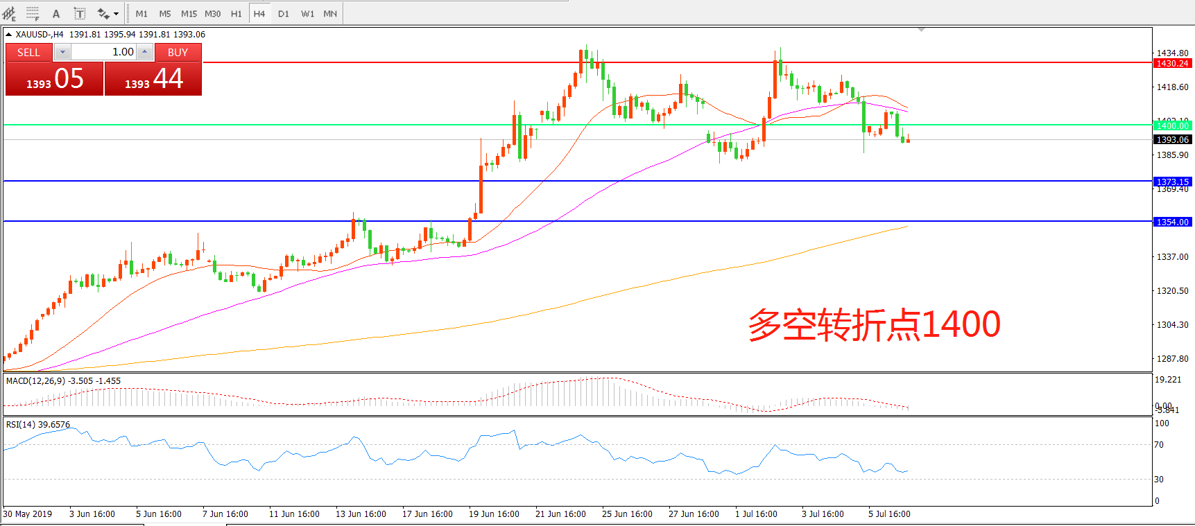 交易策略:在1400.00之下看跌,目标1373.00     1354.00