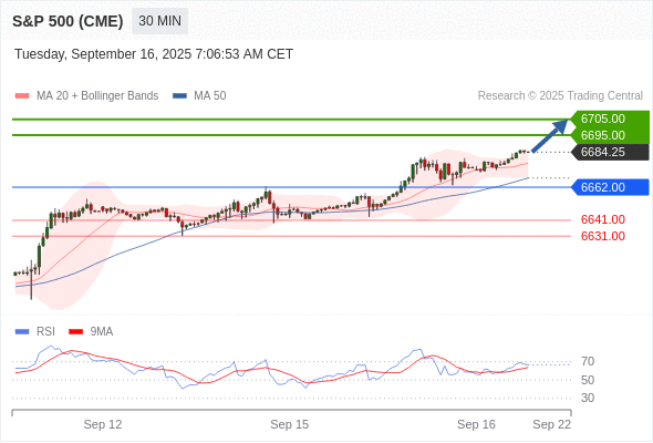 在 6662.00 之上,看涨,目标价位为 6695.00 ,然后为 6705.00 。