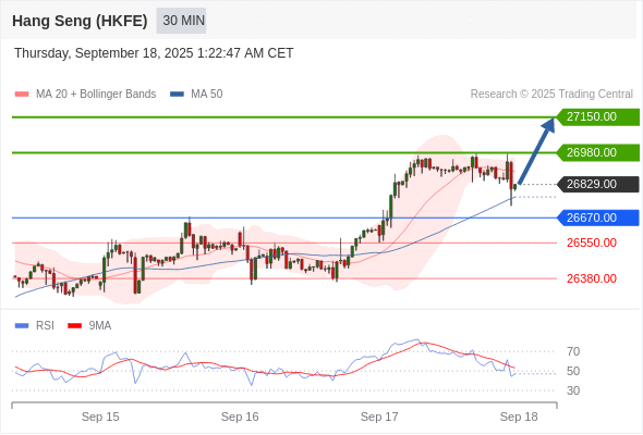 在 26670.00 之上,看涨,目标价位为 26980.00 ,然后为 27150.00 。