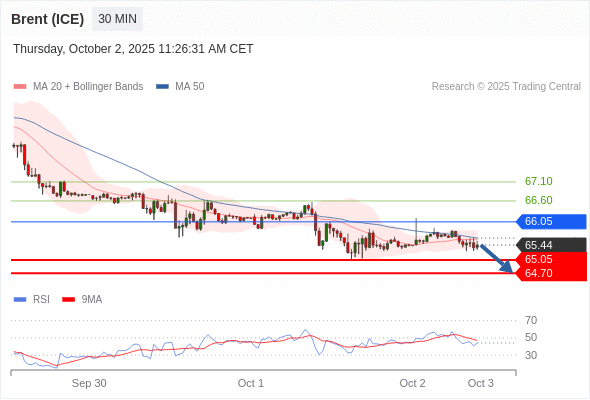 布伦特原油 (ICE) (Z5) 当日内: 短期关键阻力位在66.05。