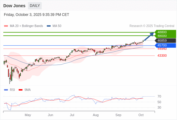 在 45700 之上,看涨,目标价位为 48000 ,然后为 48800 。