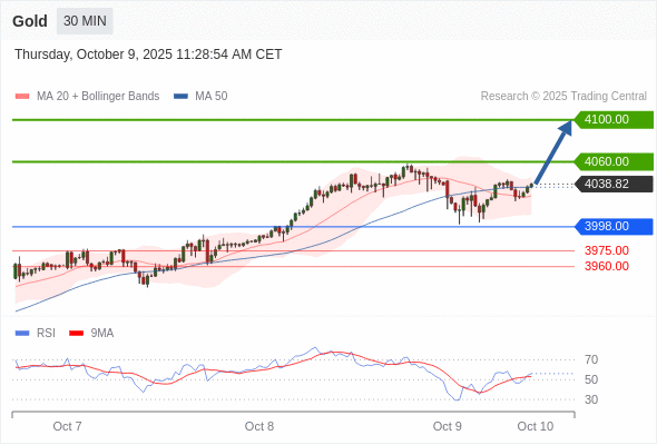 在 3998.00 之上,看涨,目标价位为 4060.00 ,然后为 4100.00 。