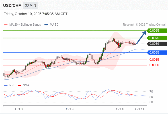 在 0.8035 之上,看涨,目标价位为 0.8075 ,然后为 0.8095 。