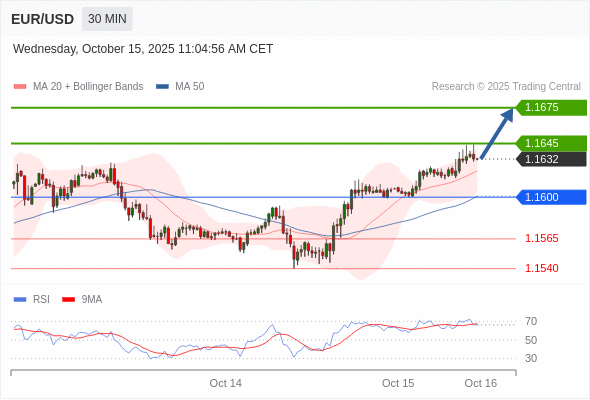 在 1.1590 之上,看涨,目标价位为 1.1645 ,然后为 1.1675 。
