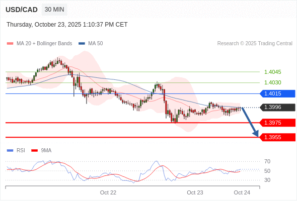 在 1.4015 之下,看跌,目标价位为 1.3975 ,然后为 1.3955 。