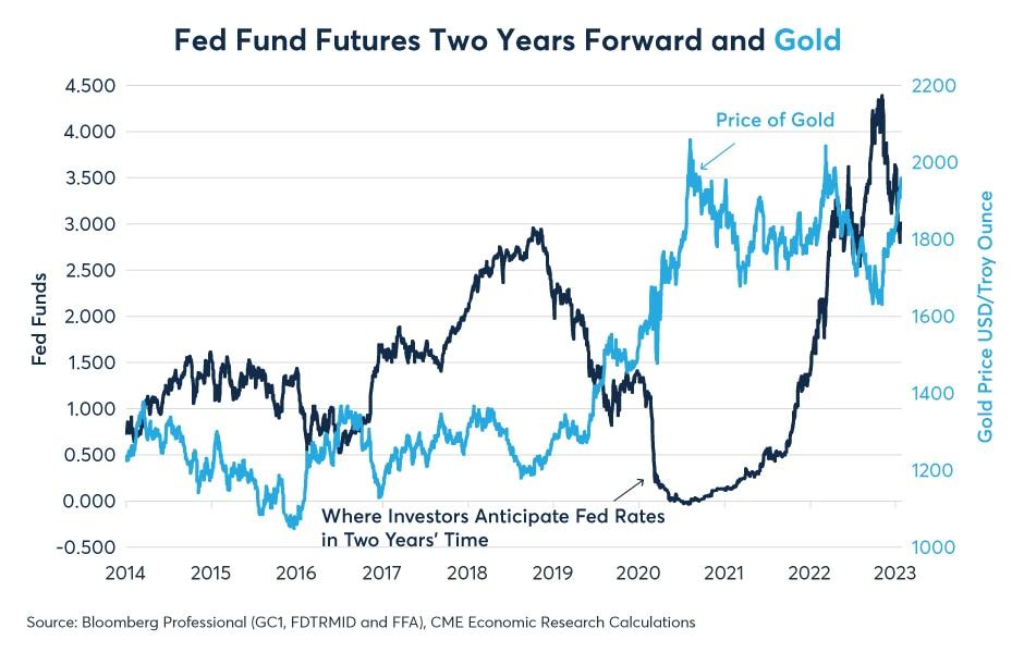 芝商所执行董事兼资深经济学家Erik Norland说,前期金价萎靡不振,使许多将黄金视为通胀对冲工具的投资者大为困惑。黄金与利率预期的每日变化长期呈负相关关系。当投资者预计美联储会加大政策收紧力度时,金价下跌,而当预期变为美联储减小政策收紧力度(或美联储降息幅度加大)时,金价则会上升。