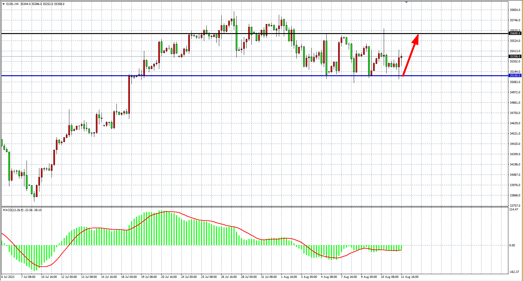 交易策略:35150 上方看涨,目标 35600 35900