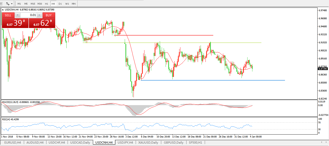 交易策略6.9200下,看跌,目标价位为6.8545,然后为 6.8242